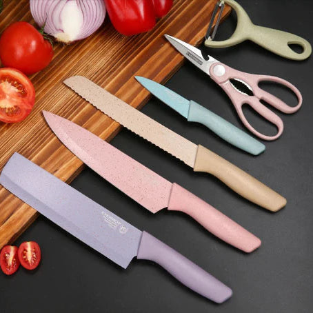SET DE CUCHILLOS 6PCS + TABLA DE PICAR 3 EN 1 DE REGALO